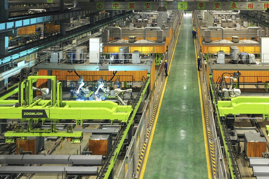 中聯(lián)重科常德塔機(jī)智能工廠一期工程,擁有12條自動(dòng)化生產(chǎn)線,1萬(wàn)多個(gè)傳感器、100多臺(tái)工業(yè)機(jī)器人、35臺(tái)無(wú)人搬運(yùn)小車、16套數(shù)控加工中心等先進(jìn)設(shè)備,平均每10分鐘產(chǎn)出1節(jié)標(biāo)準(zhǔn)節(jié),每90分鐘生產(chǎn)一條起重臂。 湖南日?qǐng)?bào)記者 唐俊 攝