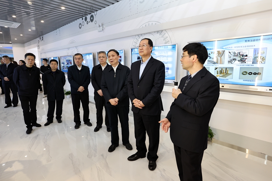 毛偉明一行先后參觀了軌道交通安全教育部重點(diǎn)實(shí)驗(yàn)室、輕合金研究院、粉末冶金研究院,和黃伯云、鐘掘院士等親切交流。毛偉明勉勵(lì)大家再接再厲,加強(qiáng)基礎(chǔ)研究,加速推進(jìn)核心技術(shù)攻關(guān),努力攻克關(guān)鍵領(lǐng)域“卡脖子”技術(shù)難題,催生更多“首臺(tái)首套首創(chuàng)首批”新裝備、新技術(shù)、新材料。要加速推進(jìn)產(chǎn)學(xué)研深度融合,促進(jìn)更多科研成果走出實(shí)驗(yàn)室、走向市場(chǎng)。