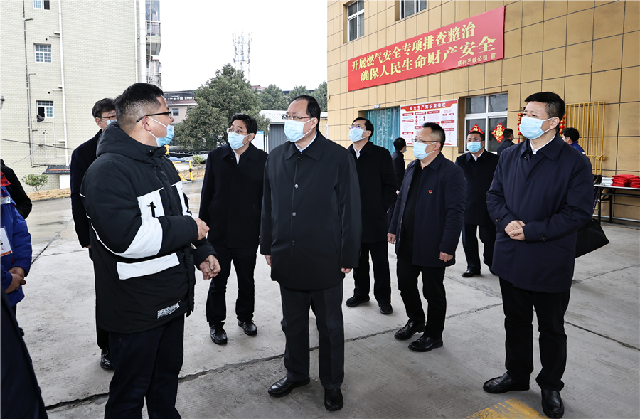 在慈利縣金榮慈利科創(chuàng)產(chǎn)業(yè)園,毛偉明一行走進(jìn)熱火朝天的項(xiàng)目施工現(xiàn)場,了解園區(qū)規(guī)劃建設(shè)情況??吹巾?xiàng)目施工緊張有序、一期主體工程接近完工時,毛偉明叮囑當(dāng)?shù)刎?fù)責(zé)同志要抓住當(dāng)前有利施工條件,嚴(yán)格現(xiàn)場管理、堅持文明施工,在確保安全和質(zhì)量的前提下,推動項(xiàng)目早建成、早投產(chǎn)。來到三峽天然氣有限公司慈利加氣站,毛偉明一行實(shí)地檢查消防器材、報警裝置等設(shè)備,詳細(xì)詢問燃?xì)廨斉渌?、?yīng)急救援演練等情況。他強(qiáng)調(diào),燃?xì)獍踩玛P(guān)千家萬戶,要深刻吸取有關(guān)事故教訓(xùn),落實(shí)落細(xì)各方責(zé)任,全面排查整治燃?xì)夤芫W(wǎng)和各類燃?xì)獍踩[患,提高燃?xì)獗举|(zhì)安全水平。