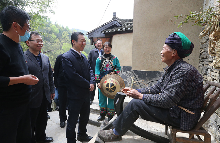 4月7日,省委副書記、省長許達哲在鳳凰縣麻沖鄉(xiāng)竹山村考察旅游扶貧情況。