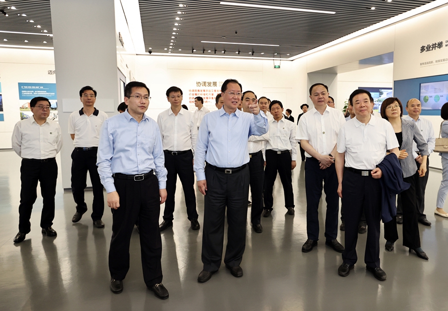 毛偉明一行在蘇州工業(yè)園區(qū)展示中心學(xué)習(xí)考察。劉尚文 攝