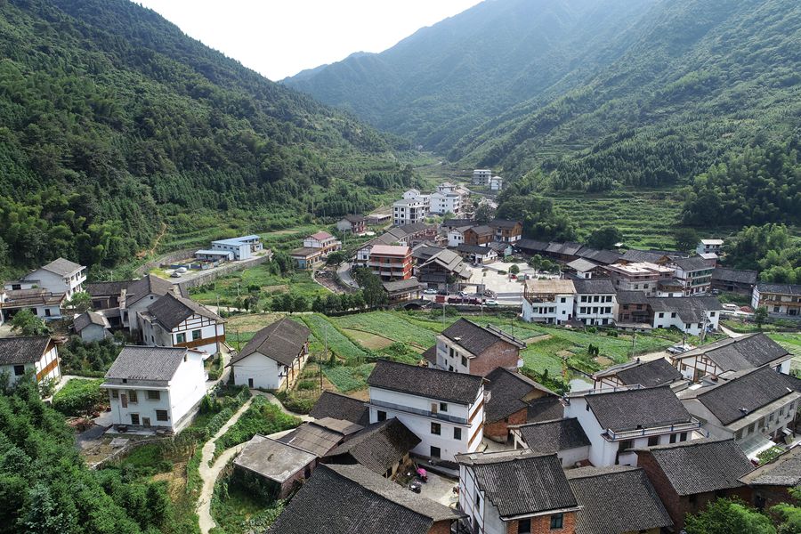 8月18日,青山環(huán)繞的新邵縣坪上鎮(zhèn)清水村,房舍白墻青瓦,錯落有致,周邊青山圍擁。湖南日報記者 李健 攝