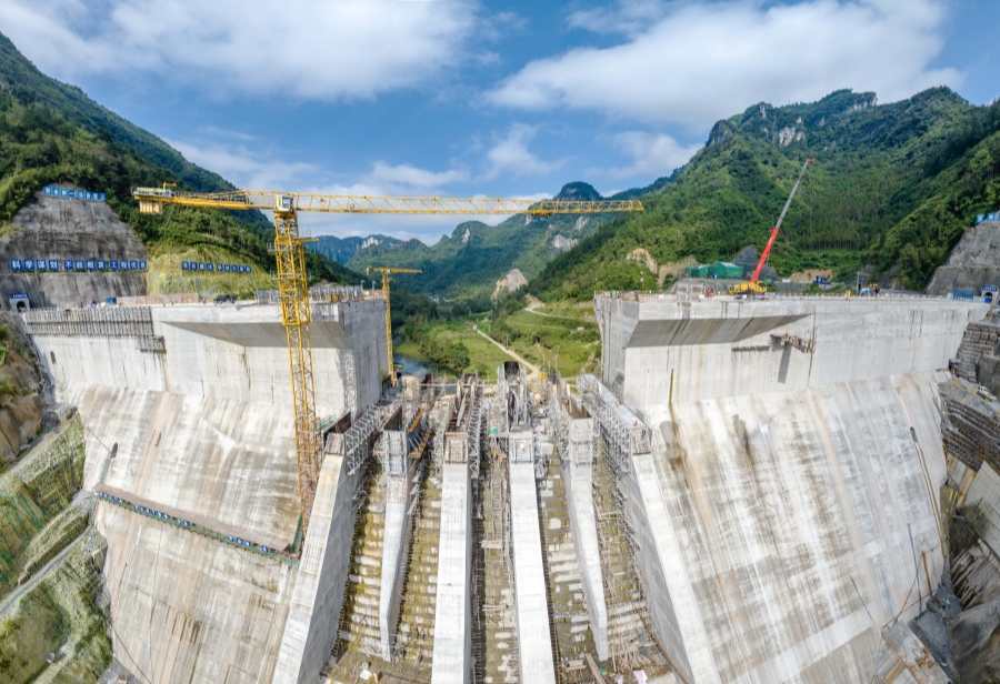 10月4日,吉首市矮寨鎮(zhèn)大興寨水庫(kù)工程建設(shè)現(xiàn)場(chǎng),工人正在施工。國(guó)慶假期,建設(shè)者們放棄休假,堅(jiān)守崗位,全力推進(jìn)這一重點(diǎn)水利工程建設(shè)。 彭璟 攝(湖南圖片庫(kù))