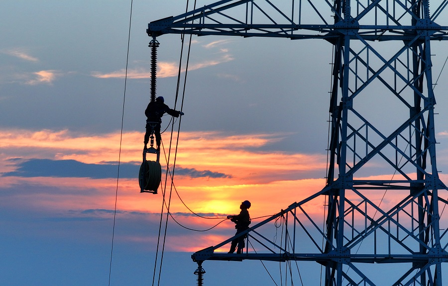 10月15日,衡陽市蒸湘區(qū)雨母山鎮(zhèn),施工人員在進(jìn)行高塔架線作業(yè)?!皩庪娙胂妗惫こ倘嫱懂a(chǎn)后,為充分利用好資源,保障用電可靠性,國網(wǎng)衡陽供電公司加緊實(shí)施轄區(qū)內(nèi)電網(wǎng)加強(qiáng)和改造工程。施工人員搶抓工期,全力推進(jìn)高塔線路架線工作,確保項(xiàng)目按期高質(zhì)量完成,為地區(qū)經(jīng)濟(jì)發(fā)展提供可靠電力保障。曹正平 彭國平 攝影報道(湖南圖片庫)