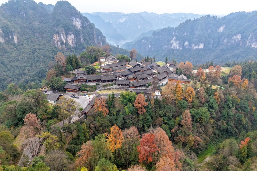 12月4日,初冬時節(jié),花垣縣雙龍鎮(zhèn)十八洞村被五彩斑斕的山野環(huán)抱,宛如一幅油畫,美不勝收。彭彪 攝