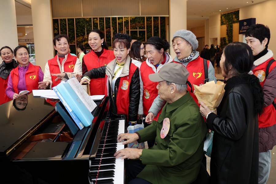 12月5日,金秋志愿者與老人共同引吭高歌。