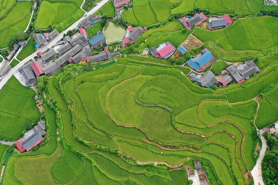 8月9日,三道坑鎮(zhèn)五郎溪村,初秋的梯田與村舍相互輝映,組成一幅美麗的鄉(xiāng)村畫卷。