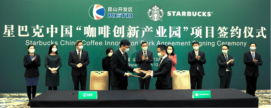 國際知名咨詢公司世邦魏理仕,多次向美國星巴克集團(tuán)大力推薦昆山并陪同考察決策建議,成為投資方選址的決定性因素。2020年3月,星巴克咖啡創(chuàng)新產(chǎn)業(yè)園項(xiàng)目正式簽約落戶,該項(xiàng)目投資額10.9億元,是美國500強(qiáng)企業(yè)去年在中國投資的首個(gè)產(chǎn)業(yè)項(xiàng)目,投產(chǎn)后年產(chǎn)值將達(dá)到11億元。