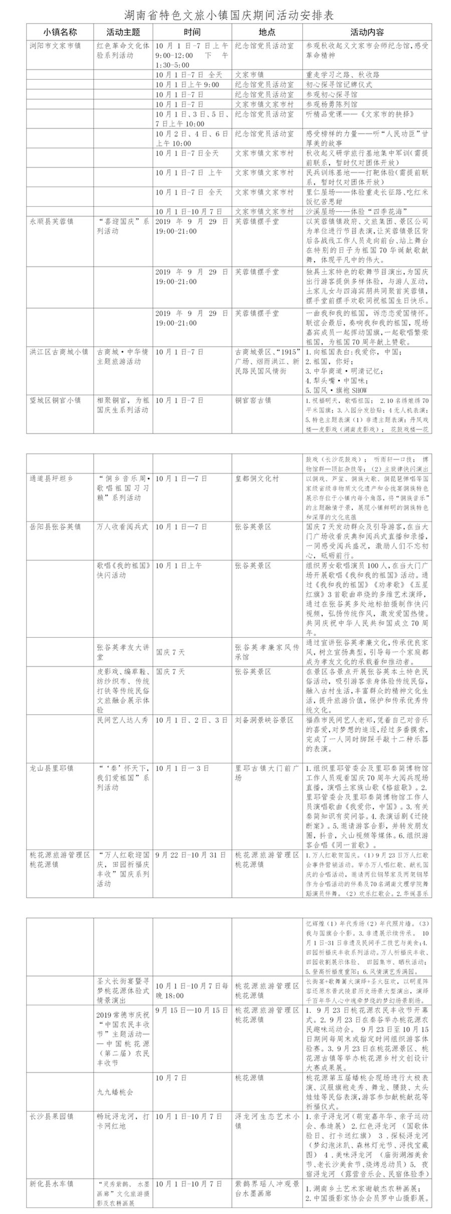 湖南省特色文旅小鎮(zhèn)國(guó)慶期間活動(dòng)安排表