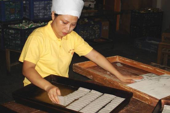 麻香糕在本地又叫“麻煩糕”,制作工藝程序復(fù)雜,分段明確,需十六道主要工序,它制作的工藝涵蓋了廣西云片糕、湘潭燈芯糕、武漢麻烘糕,合川桃片等各種名糕工藝,而且前后工藝都有創(chuàng)造性工藝,制作時(shí)需依四季變化不斷調(diào)節(jié)配方,才能達(dá)到要求。