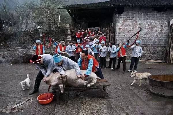 土家族人提前一天趕著過年,故稱“過趕年”。過“趕年”的晚上,寨中空場燃起篝火,土家人圍著篝火跳擺手舞,唱調(diào)年歌?!傲履辍币蛲良胰藲v史上一次重要遷移而來,土家人在這天宰牛祭神。“十月年”是土家人遷移后,為迎接新家園第一個豐收而進行的,當天土家人互相拜年,共同慶祝。