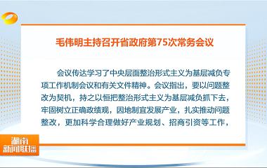 11月3日下午,省長(zhǎng)毛偉明主持召開(kāi)省政府第75次常務(wù)會(huì)議,傳達(dá)學(xué)習(xí)習(xí)近平總書(shū)記近期重要講話和指示批示精神,以及中央層面整治形式主義為基層減負(fù)專項(xiàng)工作機(jī)制會(huì)議和有關(guān)文件精神,研究部署醫(yī)保參保創(chuàng)新試點(diǎn)、食品安全、外貿(mào)促穩(wěn)提質(zhì)、礦產(chǎn)資源開(kāi)發(fā)利用、法治宣傳教育、...[詳細(xì)內(nèi)容]