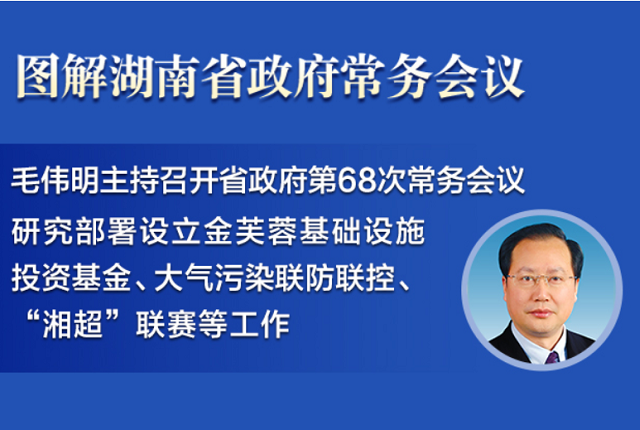 8月19日下午,省長毛偉明主持召開省政府第68次常務(wù)會議,傳達(dá)學(xué)習(xí)習(xí)近平總書記近期重要講話和指示批示精神,傳達(dá)落實(shí)國務(wù)院第九次全體會議精神,研究部署設(shè)立金芙蓉基礎(chǔ)設(shè)施投資基金、加強(qiáng)重點(diǎn)城市大氣污染聯(lián)防聯(lián)控、加強(qiáng)行政復(fù)議行政應(yīng)訴、“湘超”聯(lián)賽籌備等工作。[詳細(xì)內(nèi)容]