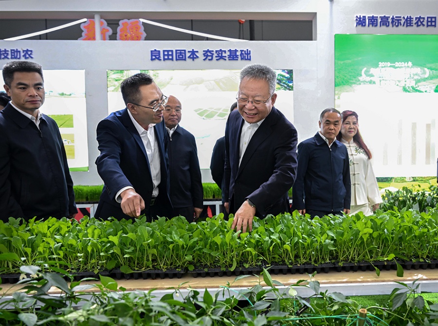 沈曉明先后來(lái)到良田良種良機(jī)良法融合成果、水肥一體化設(shè)備、現(xiàn)代設(shè)施農(nóng)業(yè)、糧油大省精品等展區(qū),以及省際交流館、湖南市州形象館,與參展單位負(fù)責(zé)人交流,了解展銷(xiāo)情況。他指出,要用好用足展會(huì)平臺(tái),不斷增加優(yōu)質(zhì)農(nóng)產(chǎn)品供給,打造更多老百姓信得過(guò)的放心品牌,讓群眾享受現(xiàn)代農(nóng)業(yè)發(fā)展成果。要強(qiáng)化農(nóng)業(yè)科技創(chuàng)新,大力推進(jìn)農(nóng)業(yè)機(jī)械化、智能化,不斷提升農(nóng)業(yè)綜合生產(chǎn)能力和質(zhì)量效益。要堅(jiān)定市場(chǎng)化辦展方向,把辦展和招商更好結(jié)合起來(lái),持續(xù)提高辦展能力和服務(wù)水平。