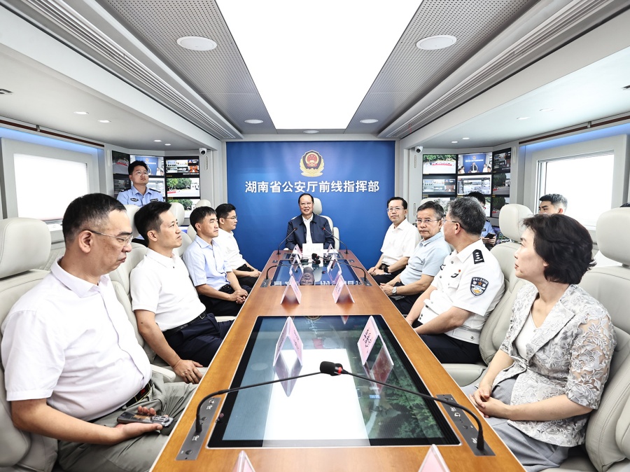 毛偉明在移動(dòng)指揮車上了解有關(guān)情況。