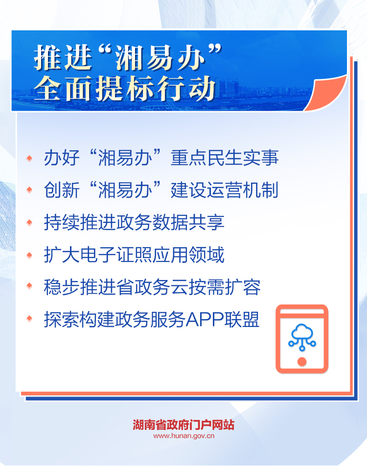 近日,省政府辦公廳印發(fā)了《湖南省2023年政務(wù)管理服務(wù)工作要點》,文件提出重點圍繞打好“發(fā)展六仗”,著力開展“六大行動”。