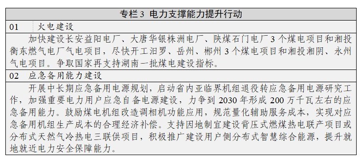 )提升電力應(yīng)急備用能力。加強(qiáng)極端形勢(shì)下電力風(fēng)險(xiǎn)管控,做好應(yīng)對(duì)自然災(zāi)害、尖峰負(fù)荷、大面積停電、電網(wǎng)攻擊等情況的保供預(yù)案,提高應(yīng)急處置和抗災(zāi)能力。開展中長(zhǎng)期應(yīng)急備用電源規(guī)劃,按照最大負(fù)荷3%—4%疊加新能源裝機(jī)容量1%—3%標(biāo)準(zhǔn)配置應(yīng)急備用電源規(guī)模。落實(shí)國(guó)家應(yīng)急備用電源管理要求,科學(xué)認(rèn)定和退出應(yīng)急備用機(jī)組,對(duì)符合能效、環(huán)保、安全等政策和標(biāo)準(zhǔn)要求的退役火電機(jī)組,按照“關(guān)而不拆”原則轉(zhuǎn)為應(yīng)急備用電源,做好設(shè)備維護(hù)和燃料供應(yīng)保障。支持分布式天然氣發(fā)電項(xiàng)目建設(shè),在有規(guī)模熱(冷)負(fù)荷的工業(yè)園區(qū)、經(jīng)濟(jì)開發(fā)區(qū)、空港新區(qū)等區(qū)域,因地制宜建設(shè)背壓式燃煤熱電聯(lián)產(chǎn)項(xiàng)目或分布式天然氣冷熱電三聯(lián)供項(xiàng)目,積極推廣建設(shè)用戶側(cè)分布式智慧綜合能源,提升就地就近電力安全保障能力。加強(qiáng)政府、醫(yī)院、鐵路、民航等重要電力用戶應(yīng)急自備電源建設(shè),力爭(zhēng)實(shí)現(xiàn)應(yīng)配盡配全面覆蓋,電源容量應(yīng)滿足全部保安負(fù)荷需求。加強(qiáng)抽水蓄能電站應(yīng)急備用能力建設(shè),推動(dòng)抽水蓄能電站具備黑啟動(dòng)功能。做好一次能源監(jiān)測(cè)預(yù)警和供應(yīng)協(xié)調(diào),提升電源發(fā)電能力,利用負(fù)荷和電源的時(shí)空互補(bǔ)特性,有效提高湖南與其他區(qū)域間電力互補(bǔ)互濟(jì)、調(diào)劑余缺能力。
