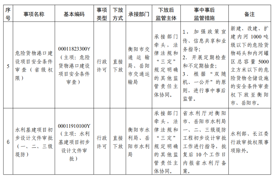 為貫徹落實(shí)《中共湖南省委關(guān)于錨定“三高四新”美好藍(lán)圖 加快推動(dòng)高質(zhì)量發(fā)展的若干意見(jiàn)》(湘發(fā)〔2023〕7號(hào))精神,支持岳陽(yáng)市、衡陽(yáng)市省域副中心城市建設(shè),決定賦予岳陽(yáng)市、衡陽(yáng)市部分省級(jí)經(jīng)濟(jì)社會(huì)管理權(quán)限?,F(xiàn)就有關(guān)事項(xiàng)通知如下: