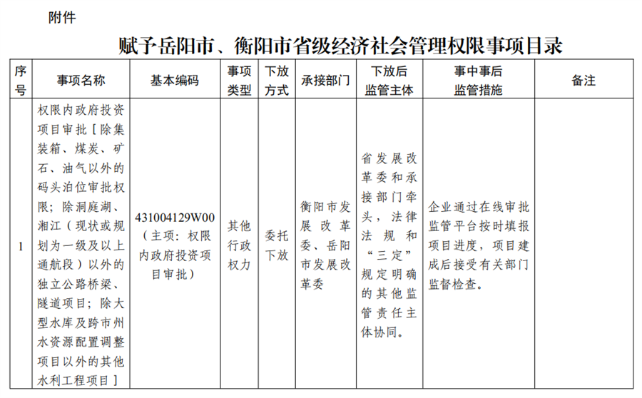 附件:賦予岳陽(yáng)市、衡陽(yáng)市省級(jí)經(jīng)濟(jì)社會(huì)管理權(quán)限事項(xiàng)目錄