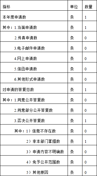 2013年,省統(tǒng)計(jì)局受理政府信息公開(kāi)申請(qǐng)1件,答復(fù)1件。
