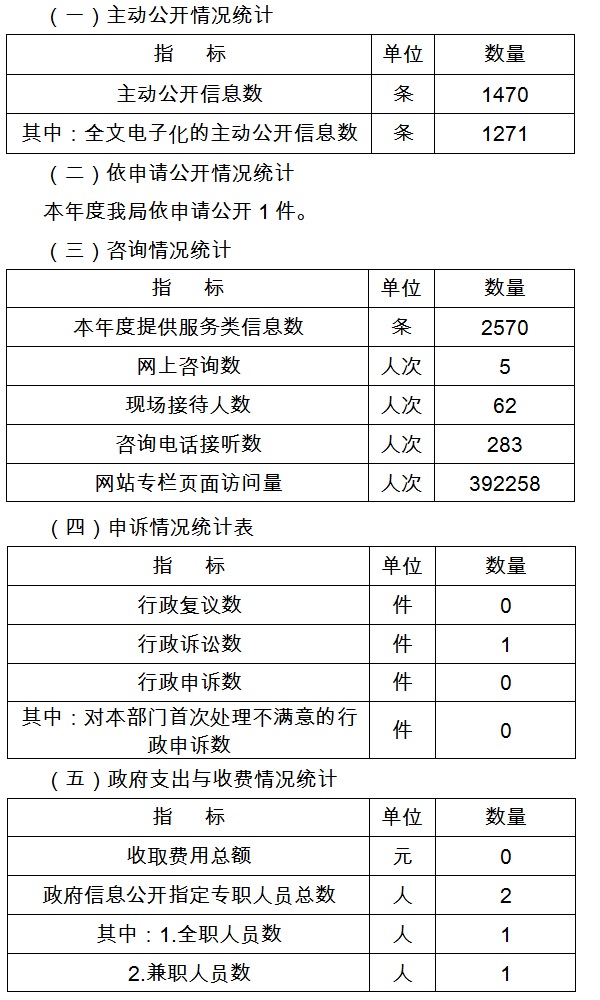 從事信息公開工作的全職人員1人,兼職人員1人。