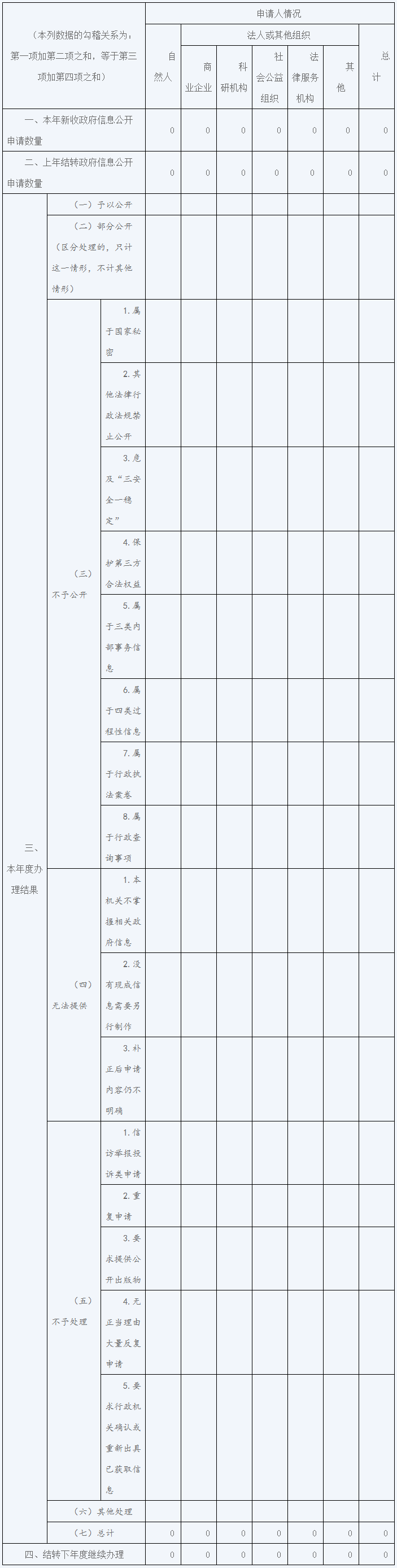 (三)依申請(qǐng)公開情況。2019年,未收到相關(guān)依申請(qǐng)公開辦理事項(xiàng)。