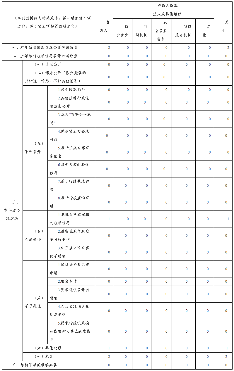 ?。ǘ┱J(rèn)真辦好依申請公開。不斷規(guī)范依申請公開工作,利用網(wǎng)絡(luò)郵箱、郵寄信件等方式,及時回應(yīng)群眾公開申請。根據(jù)已修訂的《中華人民共和國政府信息公開條例》,對依申請公開事項類型及處理方式進行改進,進一步完善制訂依申請辦理流程圖,規(guī)范做好申請登記、審核、辦理、復(fù)核、答復(fù)、歸檔等各項工作。全年共收到政府信息公開申請2件,均按規(guī)定進行了答復(fù)。
