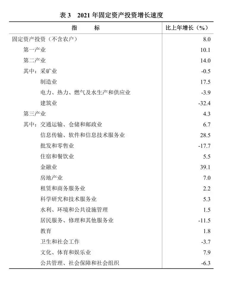 全年固定資產(chǎn)投資(不含農(nóng)戶)比上年增長(zhǎng)8.0%。其中,民間投資增長(zhǎng)9.6%。分經(jīng)濟(jì)類型看,國(guó)有投資下降5.1%,非國(guó)有投資增長(zhǎng)12.9%。分投資方向看,民生工程投資下降3.8%,生態(tài)環(huán)境投資增長(zhǎng)3.9%,基礎(chǔ)設(shè)施投資增長(zhǎng)3.6%,高技術(shù)產(chǎn)業(yè)投資