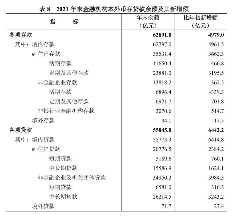 年末金融機(jī)構(gòu)本外幣各項(xiàng)存款余額62891.0億元,比上年末增長(zhǎng)8.6%。其中,住戶存款余額35531.4億元,增長(zhǎng)11.5%;非金融企業(yè)存款余額13818.2億元,增長(zhǎng)2.7%。本外幣各項(xiàng)貸款余額55845.0億元,增長(zhǎng)13.0%。其中,住戶貸款余額20776.5億元,增長(zhǎng)13.0%;非金融企業(yè)及機(jī)關(guān)團(tuán)體貸款余額34950.3億元,增長(zhǎng)12.9%。