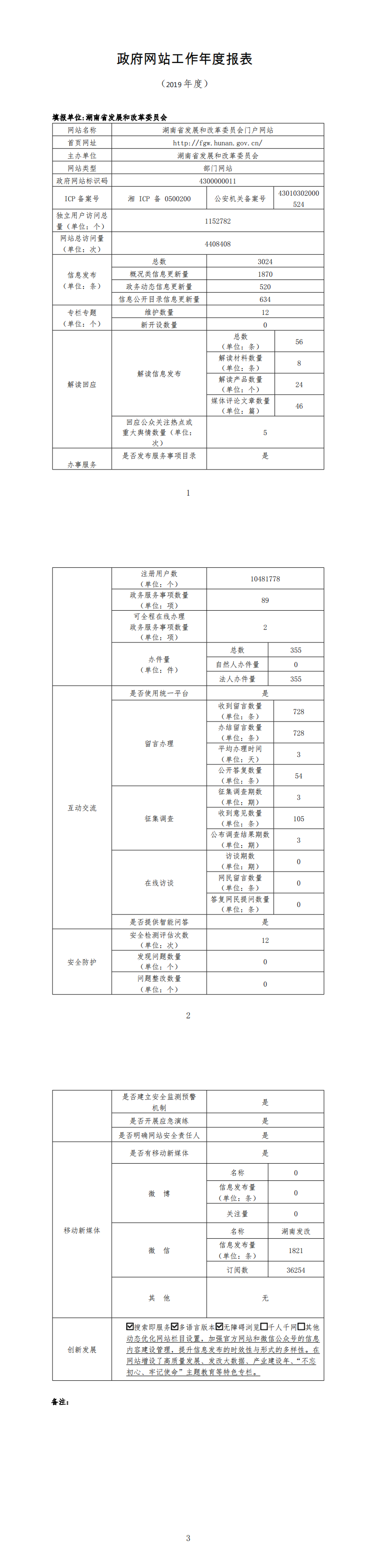 2019年湖南省發(fā)展和改革委員會網(wǎng)站工作年度報表