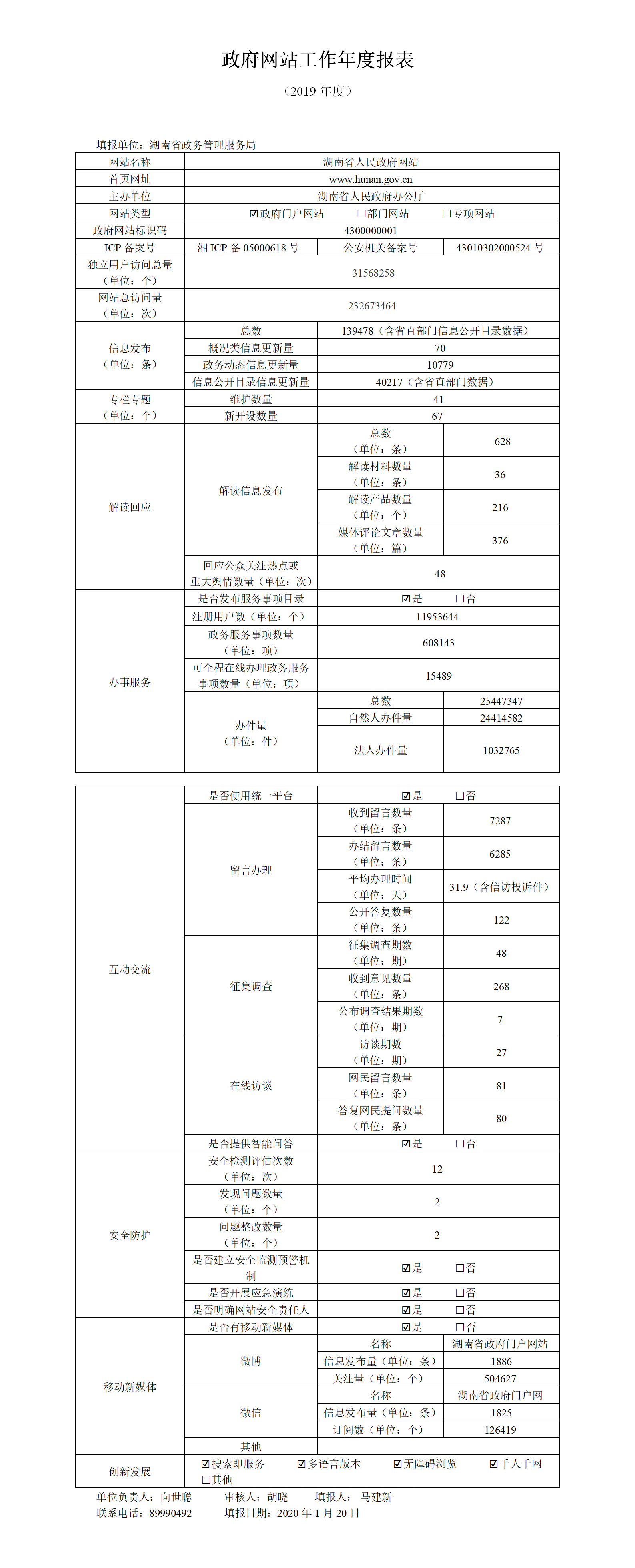 2019年湖南省政府門戶網(wǎng)站工作年度報(bào)表