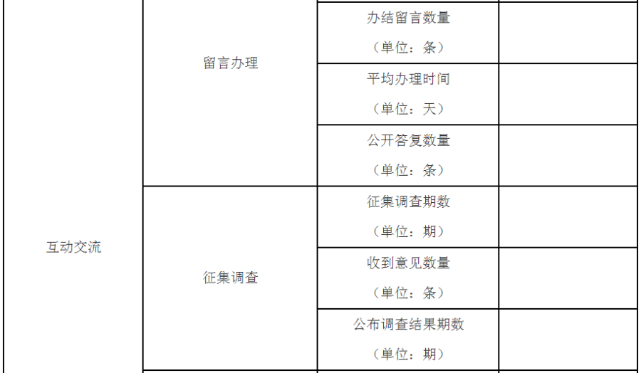(1)收到留言數(shù)量:請(qǐng)?zhí)顚懕灸甓韧ㄟ^網(wǎng)站開設(shè)的咨詢投訴、反映問題等互動(dòng)交流欄目收集到的網(wǎng)民留言總條數(shù)。