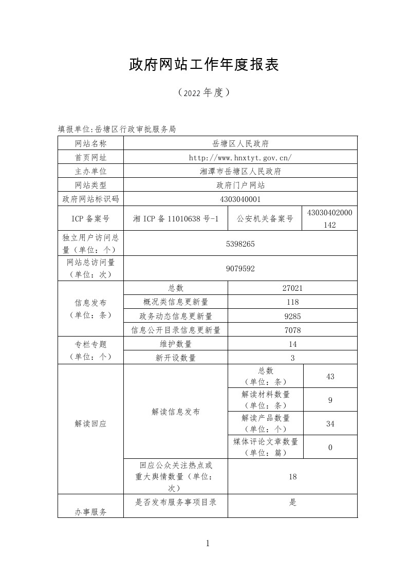 2022年湖南省政府網(wǎng)站工作年度報(bào)表