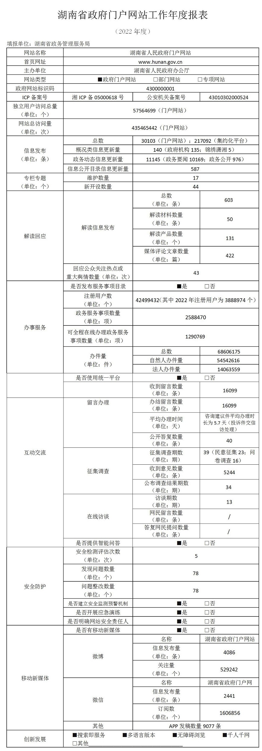 2022年湖南省政府門戶網(wǎng)站工作年度報表