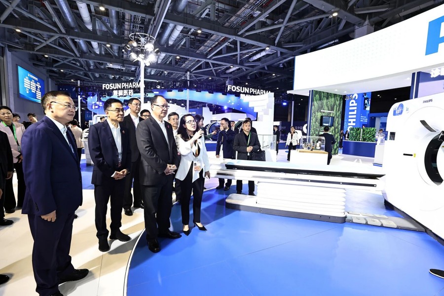 在醫(yī)療器械及醫(yī)藥保健展區(qū),毛偉明一行先后參觀了飛利浦、諾和諾德、諾華、拜耳等企業(yè)展臺(tái),了解新技術(shù)、新產(chǎn)品、新服務(wù),現(xiàn)場(chǎng)推介湖南投資機(jī)遇。他說(shuō),生物醫(yī)藥與醫(yī)療器械產(chǎn)業(yè)是湖南13條重點(diǎn)推進(jìn)產(chǎn)業(yè)鏈之一。誠(chéng)邀大家來(lái)湘共促技術(shù)變革、共拓產(chǎn)業(yè)空間,與湖南高質(zhì)量發(fā)展同頻共振、在未來(lái)賽道攜手奔跑。