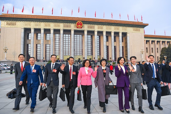 3月5日上午,十四屆全國(guó)人大三次會(huì)議在北京人民大會(huì)堂開(kāi)幕。會(huì)后,湖南省代表團(tuán)代表走出會(huì)場(chǎng)。 湖南日?qǐng)?bào)全媒體記者 傅聰 唐俊 易昂 攝