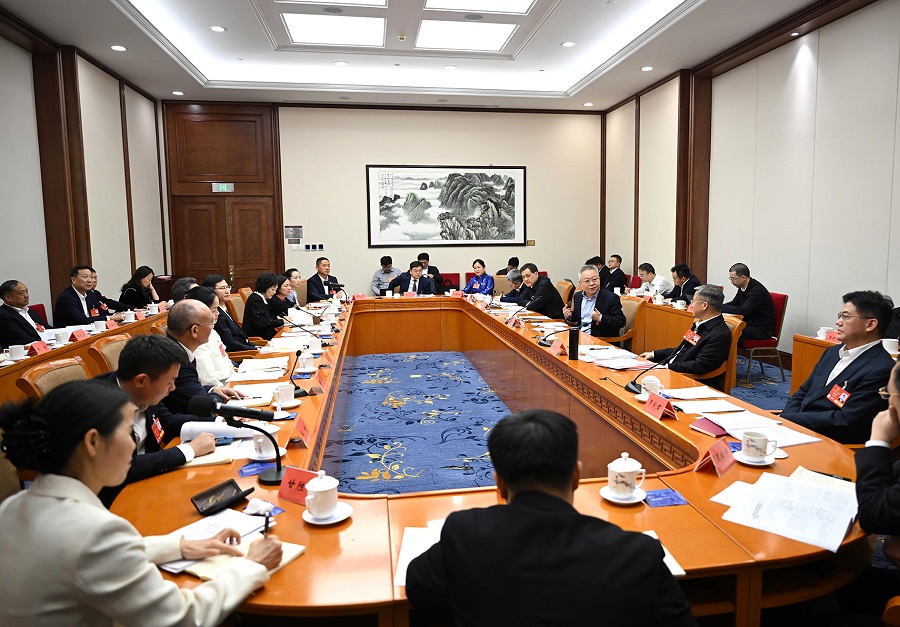 3月7日,湖南代表團在駐地舉行分組會議,審議全國人民代表大會和地方各級人民代表大會代表法修正草案。代表團團長沈曉明,副團長毛偉明等參加討論。