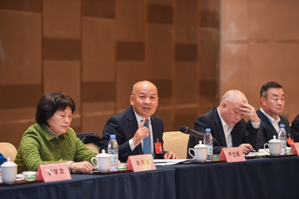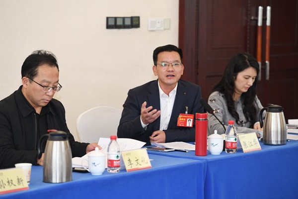 1月14日下午,張江華委員(中)就大力發(fā)展北斗規(guī)模應(yīng)用產(chǎn)業(yè)建言。湖南日報全媒體記者 田超 攝