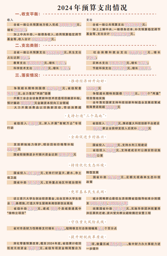 2024年,全省一般公共預(yù)算地方收入完成3448.9億元,增長2.63%。