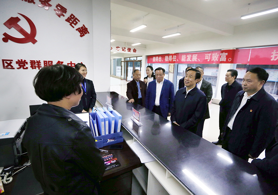 高村鎮(zhèn)龍池村的易地扶貧搬遷項目龍升家園,讓近千戶貧困戶走出大山、搬進新居。當?shù)貫榧訌娚鐣芾?,成立了龍升社區(qū)。許達哲考察了社區(qū)兩委、黨群服務中心、警務室、衛(wèi)生室、社區(qū)超市等,他說,易地扶貧搬遷后續(xù)幫扶是篇大文章,要堅持因地制宜和可持續(xù),激發(fā)搬遷戶的內生動力。