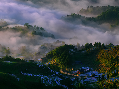 山村晨霧作者:唐平波