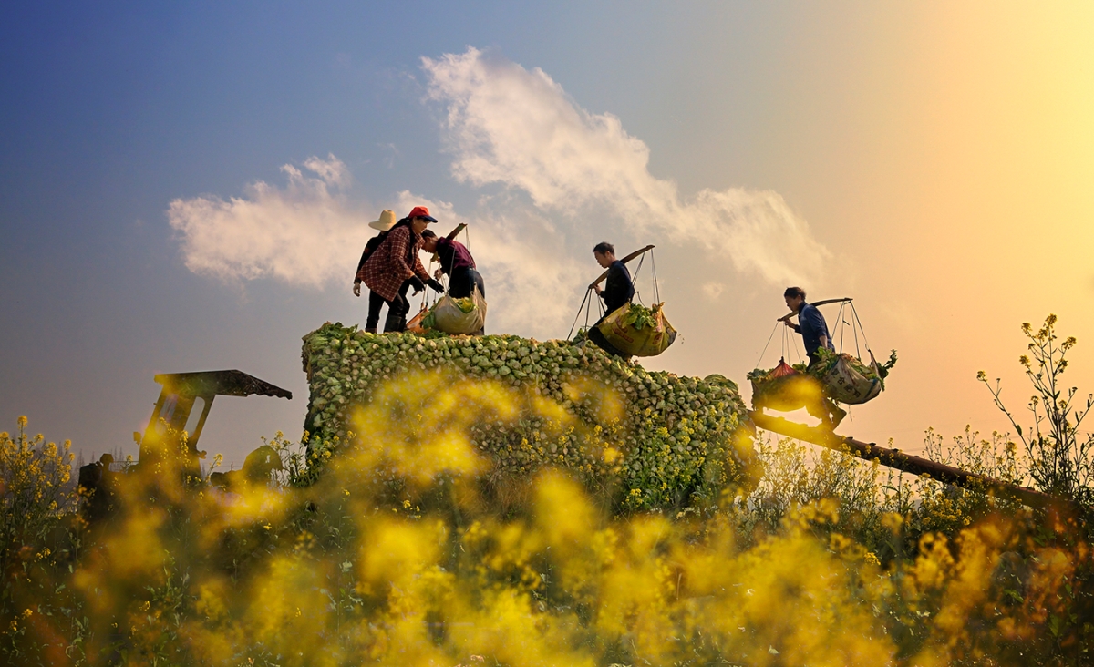 華容是全國芥菜生產(chǎn)大縣,華容芥菜是國家地理標志農(nóng)產(chǎn)品和國家地理標志證明商標。近年來,華容芥菜種植面積達22萬多畝,芥菜加工企業(yè)已達39家。攝于華容縣新河鄉(xiāng)芥菜基地。