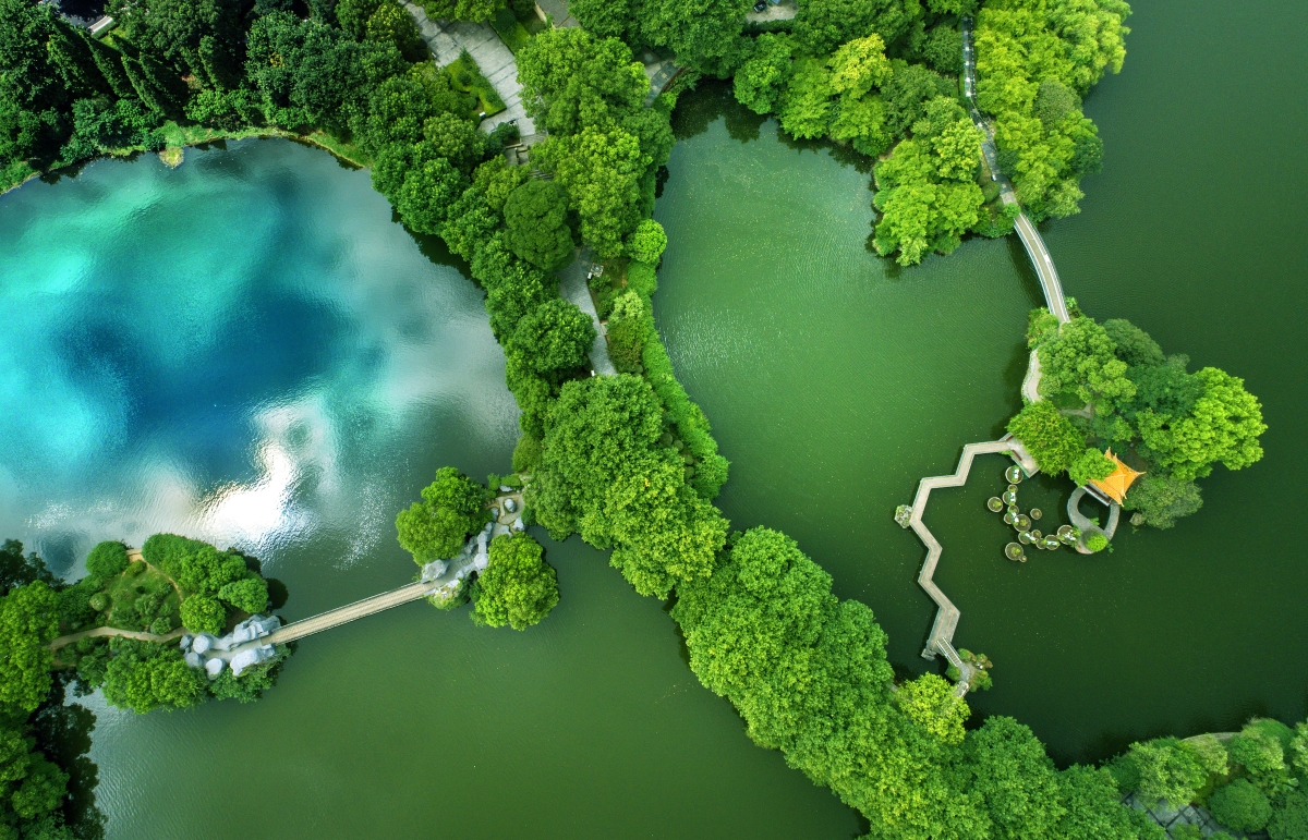 湘潭市雨湖公園,云自無(wú)心水自閑,云和水本無(wú)心相逢,但云影入水,水升化云,誰(shuí)又能說(shuō)二者之間沒(méi)有因果淵源?