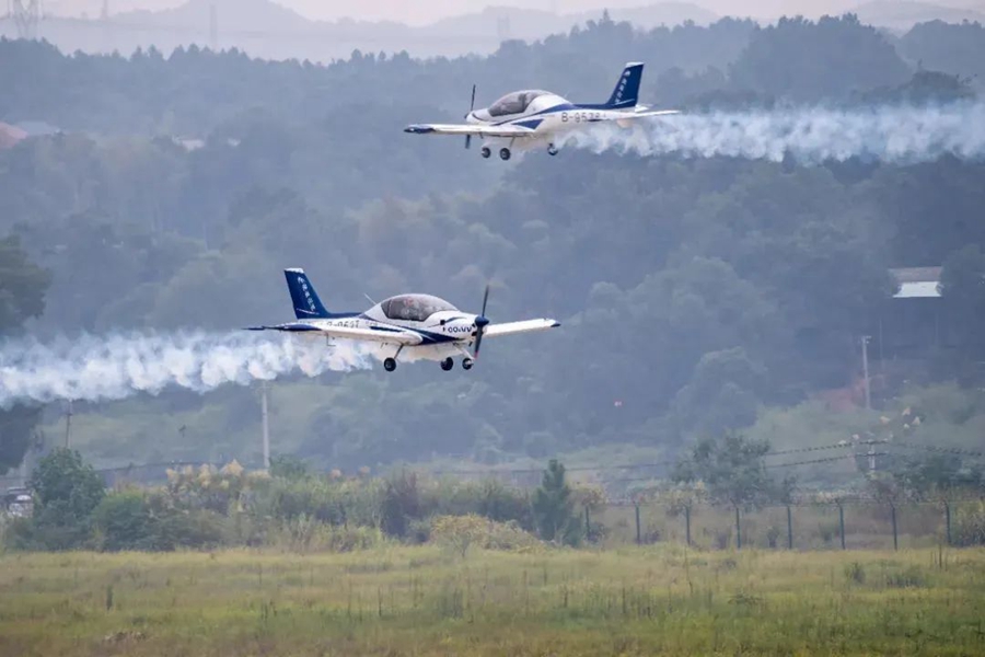 株洲蘆淞機(jī)場,湖南山河飛行表演隊(duì)現(xiàn)場特技飛行表演。