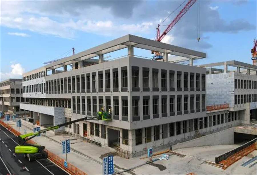 2023年8月23日,岳麓山實驗室集聚區(qū)農(nóng)科院片區(qū),工人在進(jìn)行外飾施工。湖南日報全媒體記者 趙持 攝