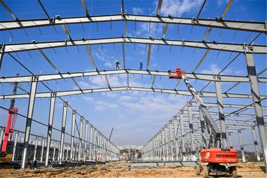 2023年11月29日,新田縣產(chǎn)業(yè)開發(fā)區(qū)湖南魯麗綠色新材料科技產(chǎn)業(yè)園項目工地,施工人員在加緊安裝廠房鋼結(jié)構(gòu)。湖南日報全媒體記者 郭立亮 通訊員 鐘偉鋒 攝