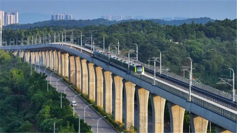 2023年8月14日,長株潭城軌西環(huán)線,地鐵列車準(zhǔn)備駛?cè)肫禾琳?。湖南日報全媒體記者 辜鵬博 攝
