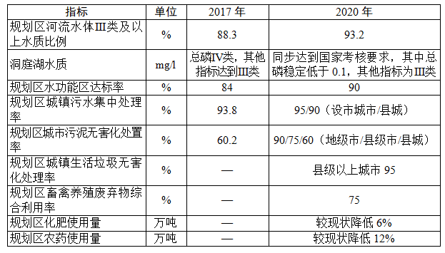 堅(jiān)持源頭減排與末端治理相結(jié)合,以對洞庭湖水質(zhì)具有重大影響的13個控制單元作為水污染防治重點(diǎn)治理區(qū),圍繞優(yōu)先控制單元斷面水質(zhì)達(dá)標(biāo)和改善,著力完善城鎮(zhèn)環(huán)境基礎(chǔ)設(shè)施,防治工業(yè)點(diǎn)源污染,加強(qiáng)養(yǎng)殖業(yè)、種植業(yè)污染防治,切實(shí)削減入湖污染物排放量。到2020年,污染物入湖總量得到嚴(yán)格控制,入湖河流控制斷面水質(zhì)達(dá)到Ⅲ類及以上,流域化學(xué)需氧量、氨氮入湖總量控制在108.57萬噸/年、13.58萬噸/年,洞庭湖區(qū)化學(xué)需氧量和氨氮入湖總量分別控制在31.59萬噸/年和4.09萬噸/年以內(nèi)。洞庭湖所有國控?cái)嗝婵偭拙€(wěn)定低于0.1毫克/升,其它指標(biāo)同步達(dá)到國家要求。規(guī)劃區(qū)設(shè)市城市污水處理率達(dá)到95%以上,縣城達(dá)到90%以上。地級市污泥無害化處理處置率達(dá)到90%以上,縣級市達(dá)到75%以上,縣城力爭達(dá)到60%以上。縣級及以上城市生活垃圾無害化處理率達(dá)到95%以上。畜禽養(yǎng)殖廢棄物綜合利用率達(dá)到75%以上?;适褂昧拷档?%以上,農(nóng)藥使用量降低12%以上,農(nóng)村廁所糞污基本得到處理或資源化利用。預(yù)測到2025年,規(guī)劃區(qū)河流水體Ⅲ類及以上水質(zhì)比例達(dá)95%(洞庭湖分別按東、西、南洞庭三個區(qū)域考核),洞庭湖水質(zhì)同步達(dá)到國家考核要求,其中總磷比2018年下降10%以上,其他指標(biāo)為Ⅲ類。規(guī)劃區(qū)畜禽養(yǎng)殖廢棄物綜合利用率繼續(xù)保持75%,化肥農(nóng)藥使用量在2020年基礎(chǔ)上保持零增長,鄉(xiāng)鎮(zhèn)污水處理設(shè)施覆蓋率達(dá)90%,鄉(xiāng)村垃圾收集處理覆蓋率達(dá)100%。洞庭湖區(qū)地級市基本建成生活垃圾分類處理系統(tǒng)。