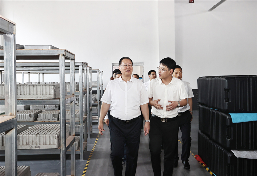 毛偉明在湖南歐騰箱包公司調(diào)研。