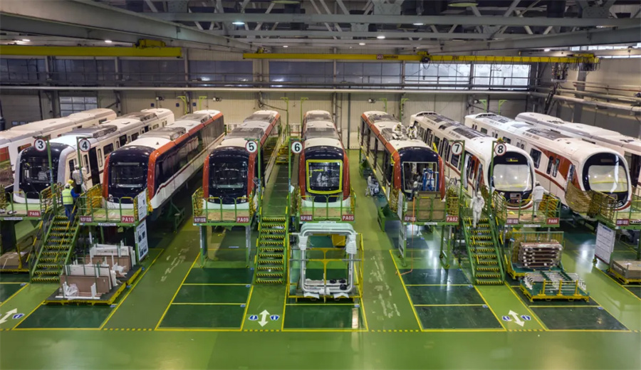 中車株洲電力機(jī)車有限公司城軌事業(yè)部總成車間,技術(shù)人員在加緊組裝城軌車輛,趕制國(guó)內(nèi)外客戶訂單。